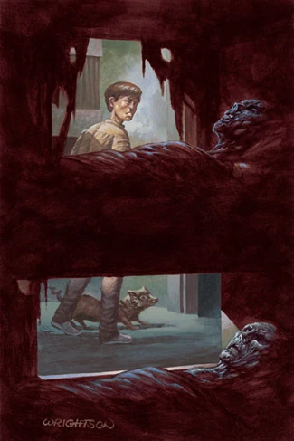 In The Wind Through the Keyhole, Tim Ross travels far from his home village and comes across a Dogan at the edge of a vast chasm. Designated "North Forest Kinnock, Bend Quadrant, Outpost 9," it is guarded by a tyger that turns out to be the wizard Maerlyn, with the key-card needed to gain access on a collar around his neck. Even after Tim retrieves the card, he is unable to open the door with it because the system powering the lock has failed.