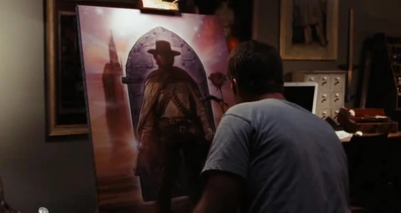 In King's 2007 film The Mist, the main character, David Drayton, can be seen painting a movie poster with Roland in the center, standing in front of a trans-dimensional Ghostwood door, with a rose and the dark tower to each side.